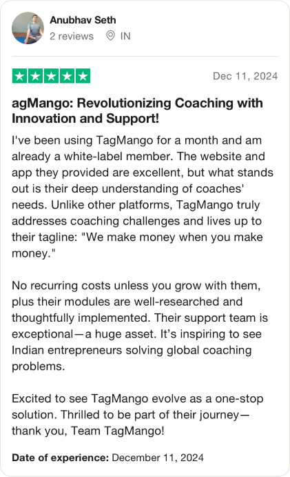 Divyanshu and Hasan, the dynamic duo behind TagMango, are on a mission to revolutionize the coaching and creator economy. With years of entrepreneurial experience and a deep understanding of creators’ needs, they created TagMango as a one-stop platform to simplify, automate, and amplify success — empowering coaches & creators to build thriving digital businesses with ease. With over 3000+ coaches generating ₹400 Cr annually, they see the potential of learning social networks and gamified, community-driven approaches to revolutionize the coaching world — not just in India but globally.